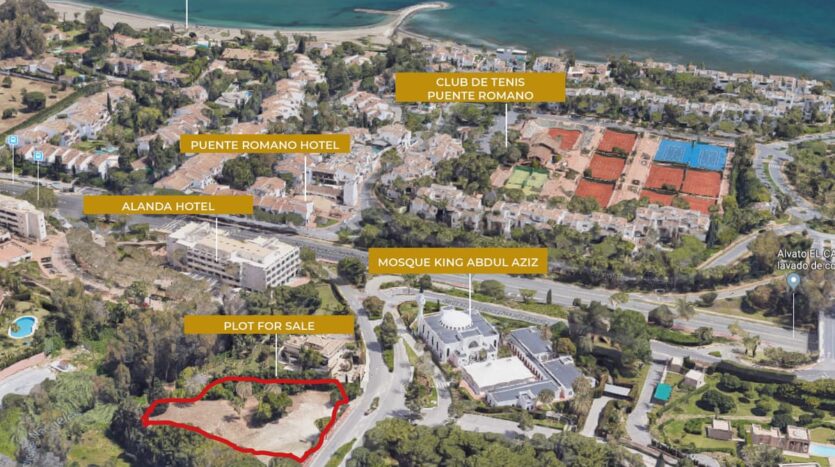 Magnificent villa for sale in an unique location in Marbella. The land is located at the Golden Mile plot very near to the Puente Romano in Marbella.