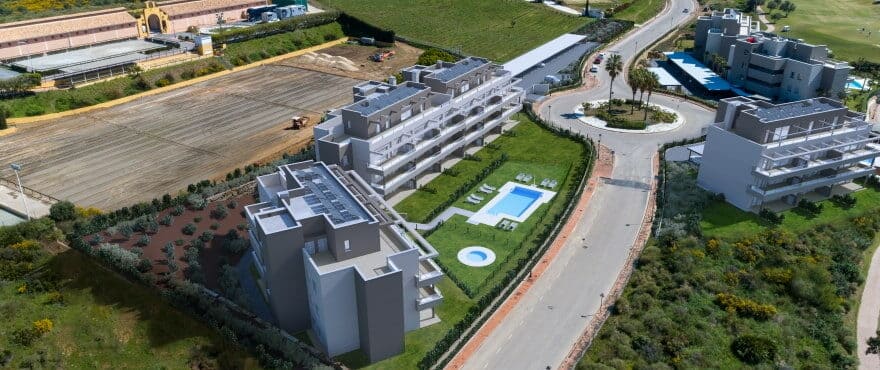 The development is being built at the top of the hill overlooking the Europa Golf Course, in a fabulous position that provides panoramic views of the golf course and the sea. All the apartments are south or southwest facing, meaning that they enjoy plenty of natural light all day long.