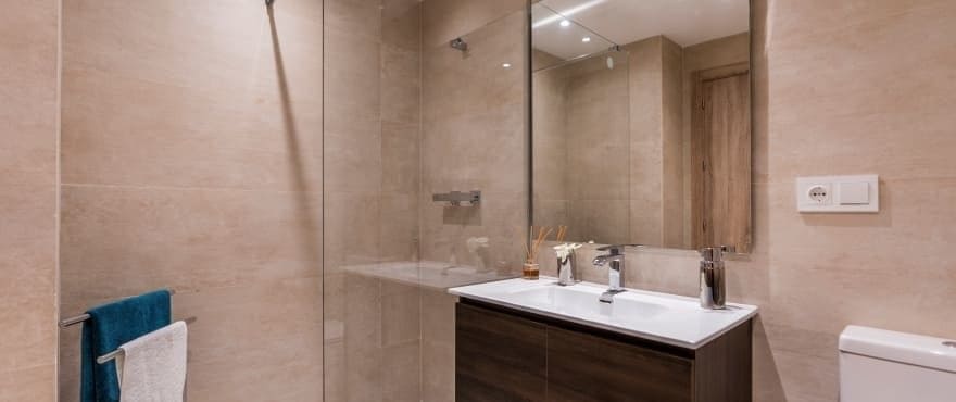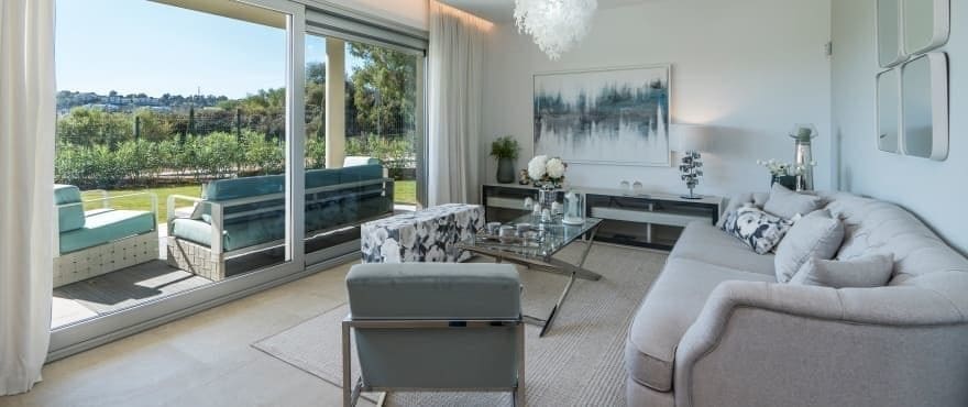 All the apartments have large terraces with glass balcony enclosures so that you can fully enjoy the fabulous views of the golf course and the apartments on the ground floor also have private gardens with views of the pool, resort gardens and the golf course that surrounds the development.